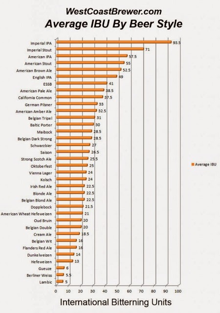 Τα IBU's στην μπίρα μπορεί να κυμαίνονται από 1-100 ενώ το όριο που μπορεί να ανιχνεύσει ένας άνθρωπος κυμαίνεται από 4 έως 9 IBU's. Το θεωρητικό σημείο κορεσμού των iso a-οξέων στην μπίρα θεωρείται το 110 IBU's το οποίο όμως πρακτικά είναι δύσκολο να επιτευχθεί