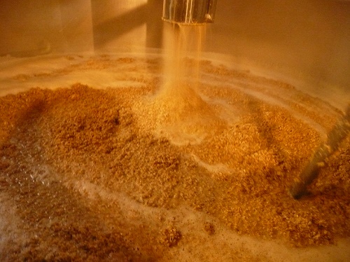 Η αλεσμένη βύνη αναμιγνύεται με νερό σε συγκεκριμένη αναλογία ώστε να προκύψει ένα ομοιογενές μίγμα πολτού. Πρέπει να γίνει με μεγάλη προσοχή ώστε να μην υπερισχύει σε ποσότητα η βύνη έναντι του νερού γιατί μπορεί να σβολιάσει και να μην μπορέσουμε να εκχυλίσσουμε όλα τα συστατικά της βύνης