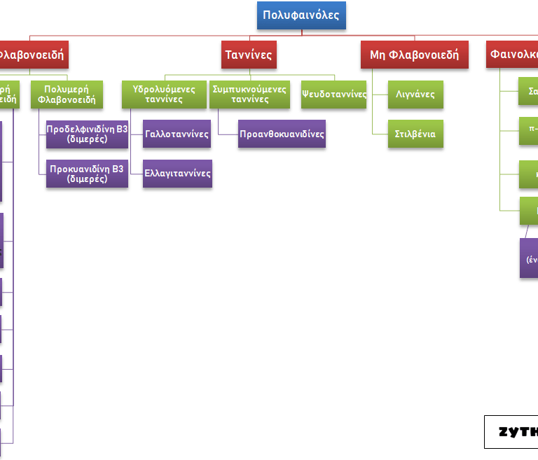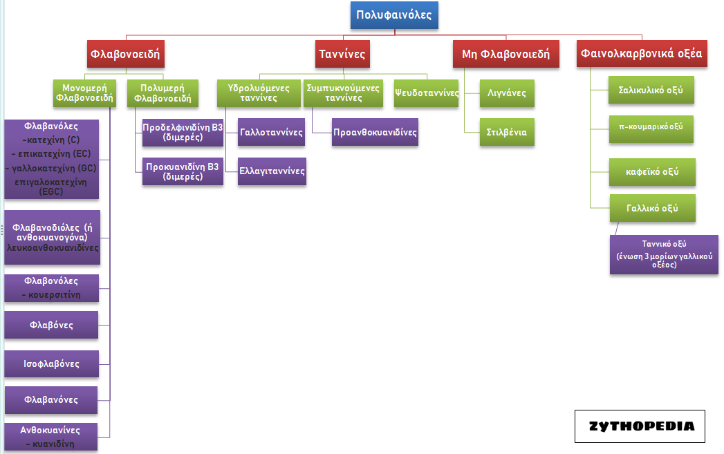 αποτελούν την κύρια κατηγορία πολυφαινολών και διακρίνονται σε υποκατηγορίες)